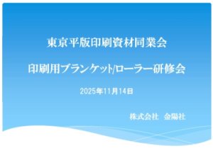 会員各社への側面支援として年3回の研修会を実施しており最新の商品情報の伝達はもとより、印刷業界の変化に素早く対応できる為の講習、環境問題やその法令等もタイムリーに研修題材にしたり、経営に必要な財務や労務の問題には専門家を講師に招き、経営体質強化の為の研修を行うなど内容は多岐にわたります。さらに営業育成、人材育成にも積極的に取り組んでおります。